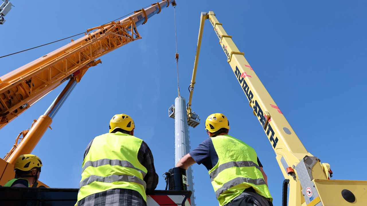 Seit Jahresbeginn hat O2 Telefónica rund 600 neue Masten für besseres Netz errichtet – wie hier in Kleinostheim (Credits: Abel Mobilfunk)