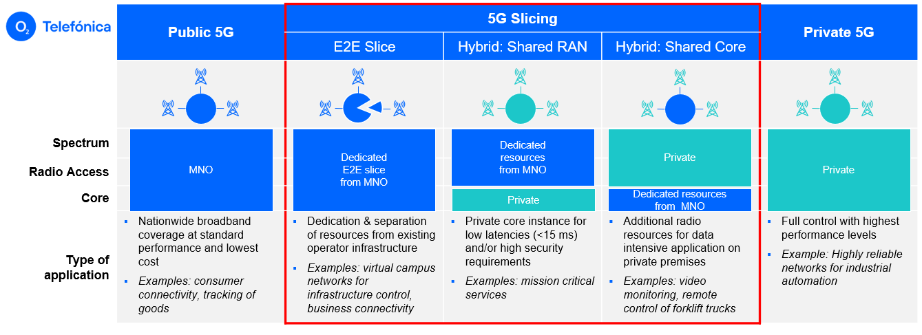 - Virtual, isolated network instances within Telefónica Germany´s public 5G infrastructure