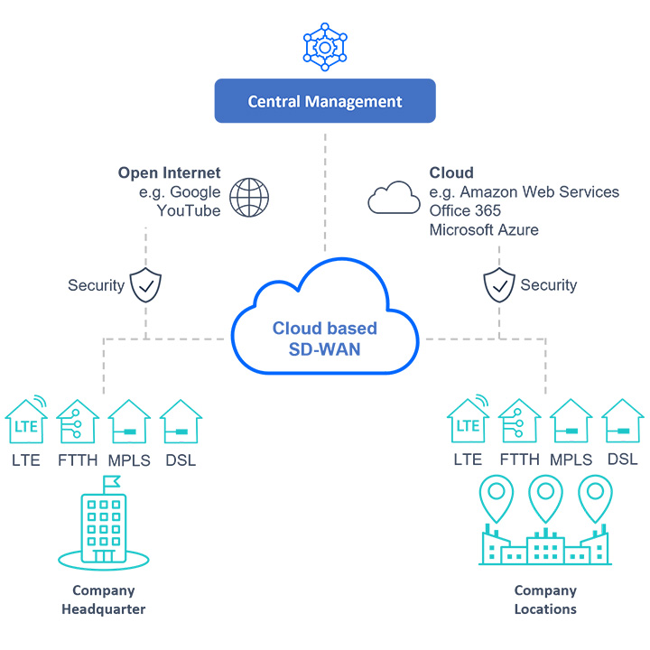 - Hybrid networks: parallel use of MPLS, internet, and LTE connections