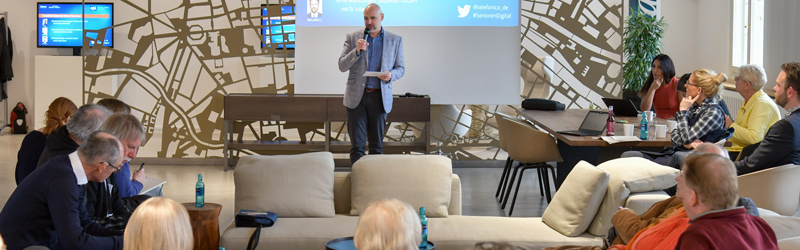 In Dialogveranstaltungen, Podcasts und Gesprächsreihen greifen wir aktuelle digitale Themen und gesellschaftliche Diskurse auf und diskutieren mit älternen Menschen und Akteursgruppen aus Politik, Zivilgesellschaft und Wirtschaft. So fördern wir die aktive Teilhabe Älterer in der (digitalen) Gesellschaft.
