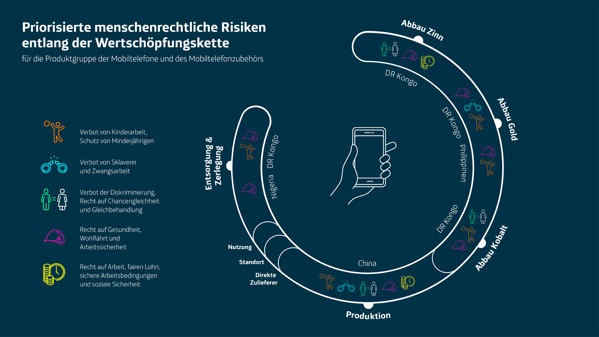Damit folgt O2 Telefónica nicht nur den gesetzlichen Anforderungen, sondern auch dem eigenen Werteverständnis. In seiner Grundsatzerklärung und seiner Menschenrechtsrichtlinie bekennt sich das Unternehmen zur Achtung und zum Schutz der Menschenrechte in der Wertschöpfungskette.