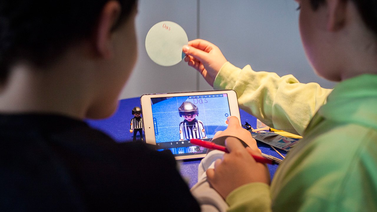 Der „Internet Guide für Kids“ gibt Kindern und deren Eltern konkrete Hilfestellungen für mehr Medienkompetenz in der digitalen Welt und bildete die Grundlage für den Workshop. Zuerst bewerteten die Fünft- und Sechstklässler mit Hilfe von Top- oder Flop-Schildern, ob sie es richtig finden, für alle Anwendungen das gleiche Passwort zu nutzen und ob sie für ihr Handy einen Virenscanner installieren sollten. Anschließend wurden die Kinder selbst aktiv. In kleinen Gruppen steckten sie die Köpfe zusammen, klebten Collagen und positionierten Spielfiguren für kleine Szenen, die sie mit den kostenlosen Videoapps “Chatterpix” und “Stop-Motion” drehten. Anhand dieser Videos veranschaulichten die Kinder, wie sie sich im Internet sicher und fair verhalten können, zum Beispiel, nicht einfach ein Foto von anderen auf Instagram hochzuladen. „Man sollte die Person immer vorher fragen“, meinte Schülerin Rebecca.