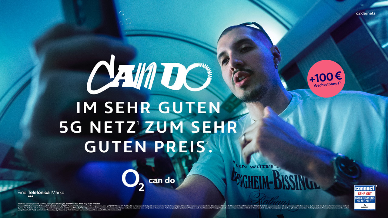 „O2 can do“ ist seit 20 Jahren der weithin bekannte Claim der Kernmarke von O2 Telefónica. Mit 5G gewinnt er zusätzlich an Bedeutung. Die Möglichkeiten des neuen Mobilfunkstandards sorgen für noch mehr „can do“ bei O2 Kund:innen. Deshalb steht die „can do“-Haltung im Zentrum der neuen Markenpositionierung von O2. Die zugehörige Kampagne demonstriert, wie Technologie und das sehr gute 5G-Netz von O2* das scheinbar Unmögliche möglich werden lassen – sei es, dass zwei Musiker ein gemeinsames Konzert geben, obwohl sie nicht am selben Ort sind, oder dass ein Basketballer mithilfe von Virtual Reality den Korbwurf schafft. Drei aus dem Markenfilm abgeleitete Produktfilme stellen die Qualität des 5G-Netzes von O2 in den Vordergrund und fokussieren dabei auf die Segmente Sport, Gaming und Musik.