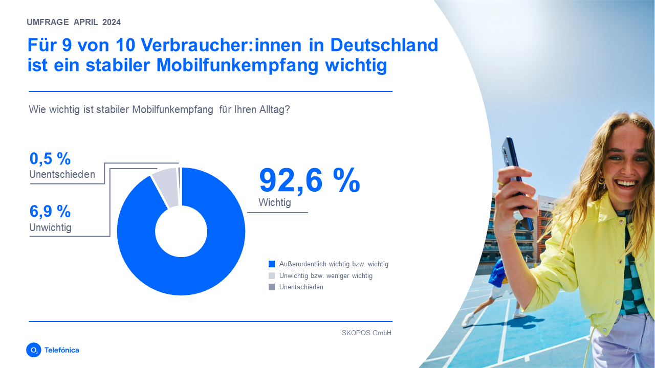 Für 92,6 Prozent der befragten Verbraucher:innen ist ein stabiler Mobilfunkempfang wichtig