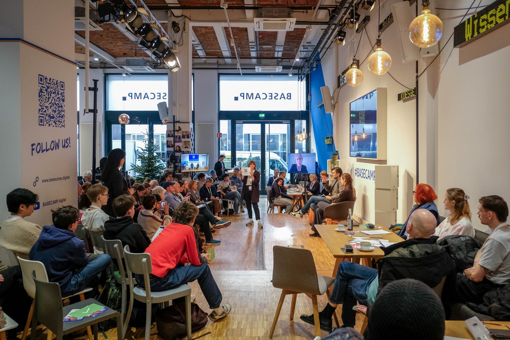Über Generationen hinweg: Jung und Alt sprechen im BASECAMP in Berlin über Chatbots (Credits: Till Budde)