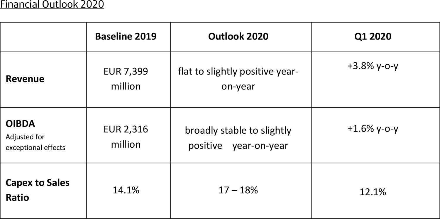 Following the results of the first quarter, Telefónica Deutschland confirms its outlook for the full year but will continue to monitor and analyse the effects of COVID-19.