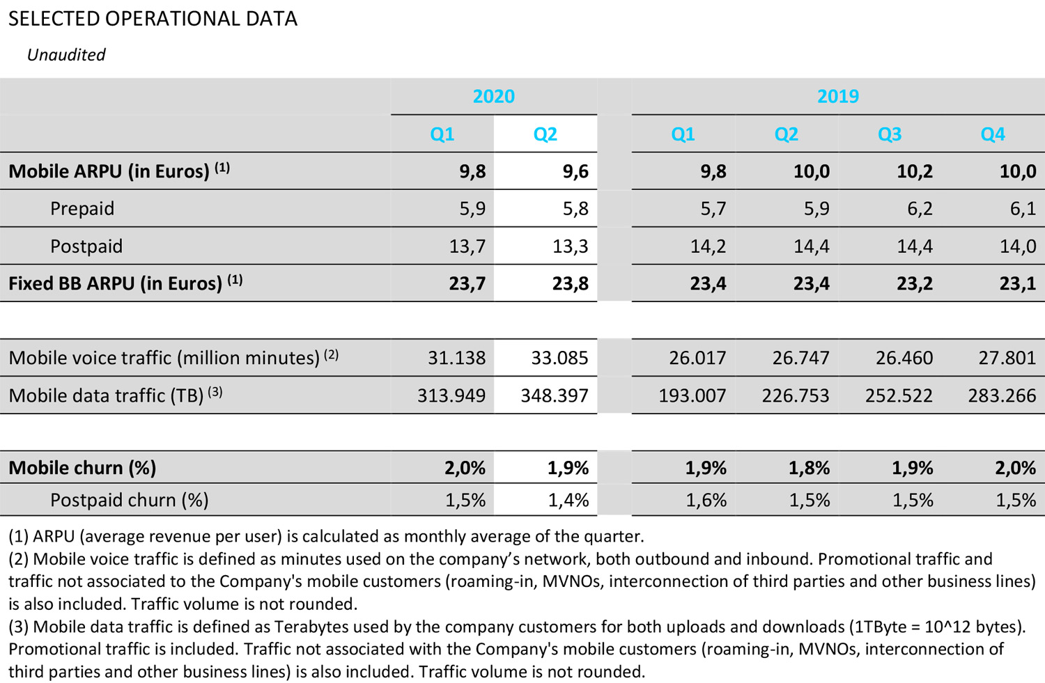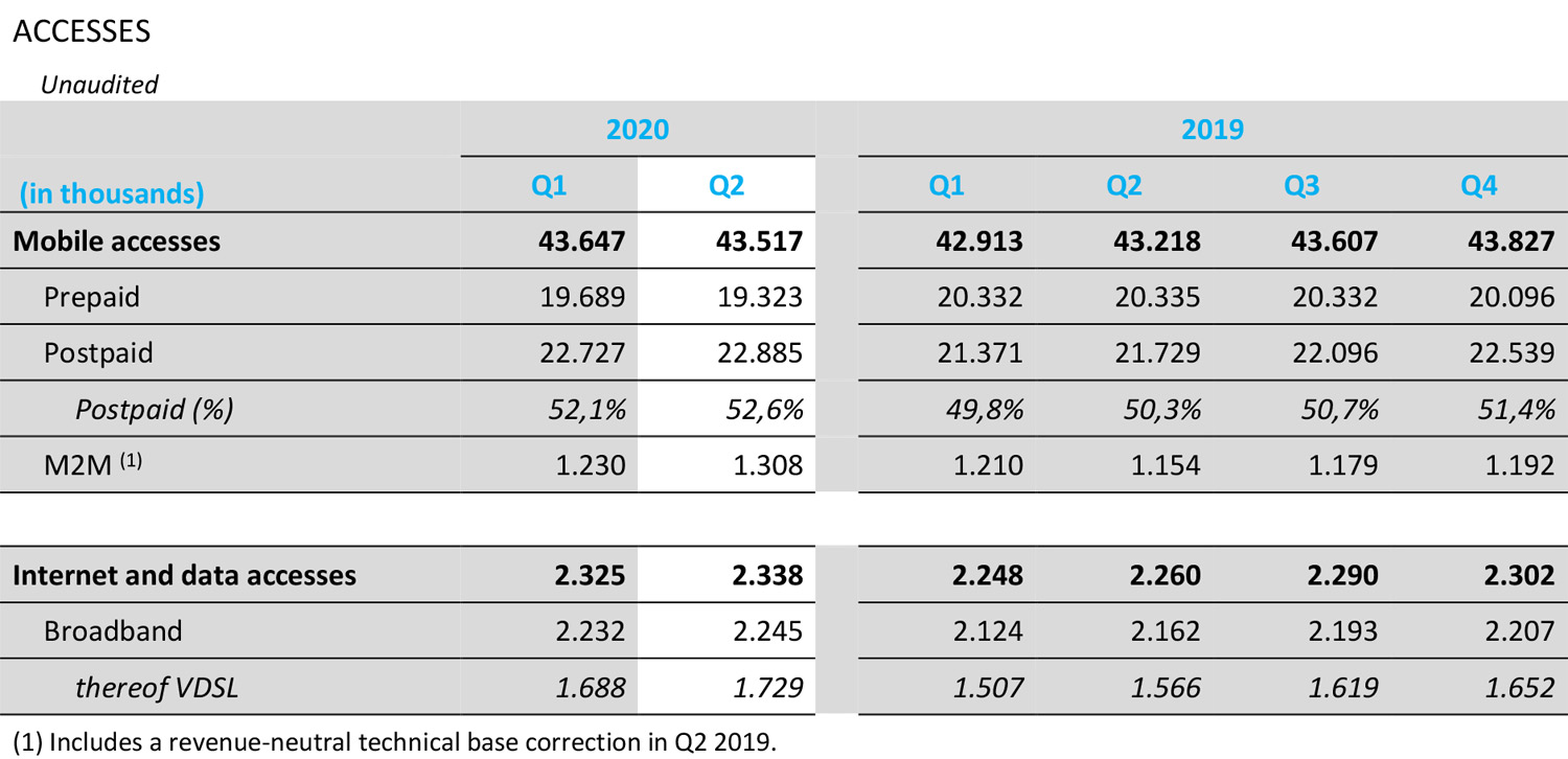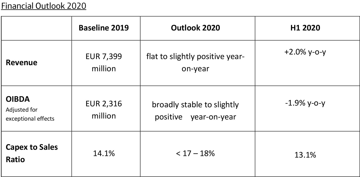 | 2 | Special factors in H1 2020 amounted to ~48 million euros at OIBDA level, of which ~23 million euros were attributable to COVID-19. |