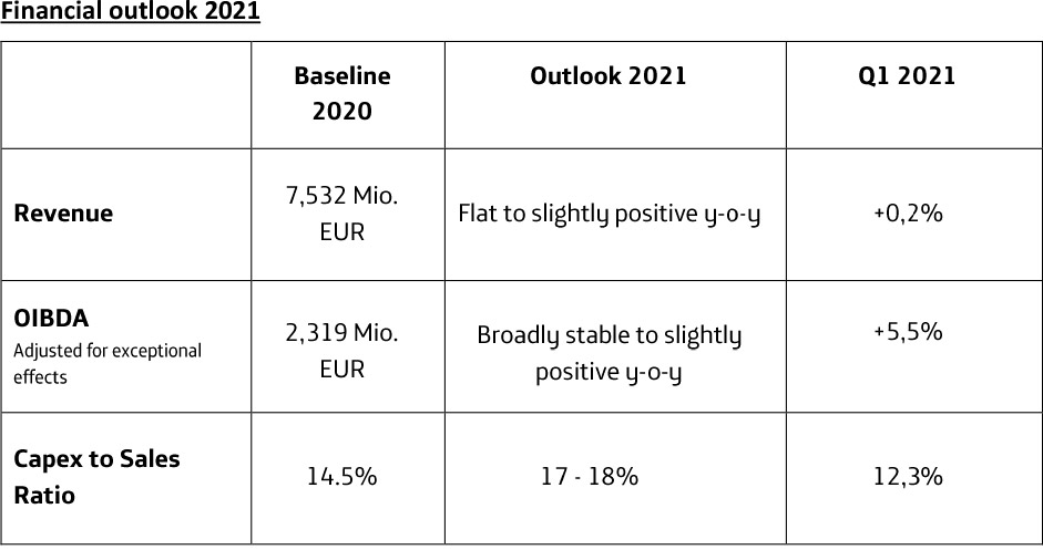 • Telefónica Deutschland CEO Markus Haas: "We have made a good start to the current fiscal year despite the continuing major challenges posed by the COVID-19 pandemic. We continued to grow profitably in the first quarter, again demonstrating our operational and financial strength. The investments in our network and service are paying off. We confirm our targets for 2021. We continue to go full steam ahead with our investments and network expansion.”