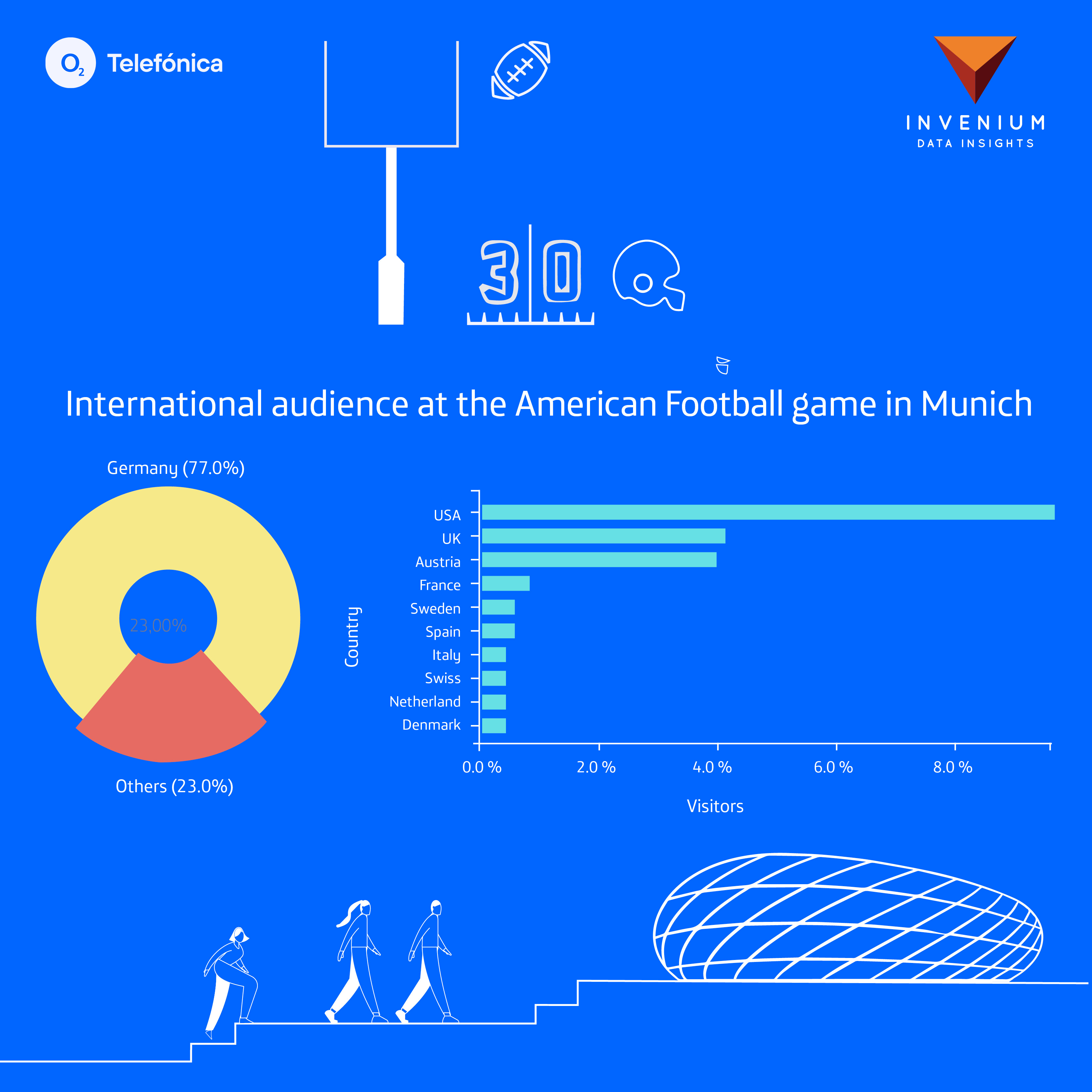 What a spectacular game! Tens of thousands of American football Football fans came to Munich last weekend to watch the first regular season game of the US Professional Football League in Germany. A look at the mobile data from the O2 Telefónica network shows: Fans came from all over Germany and many from the United States. According to the data, they are significantly younger and more digitally active than those who attend soccer matches.