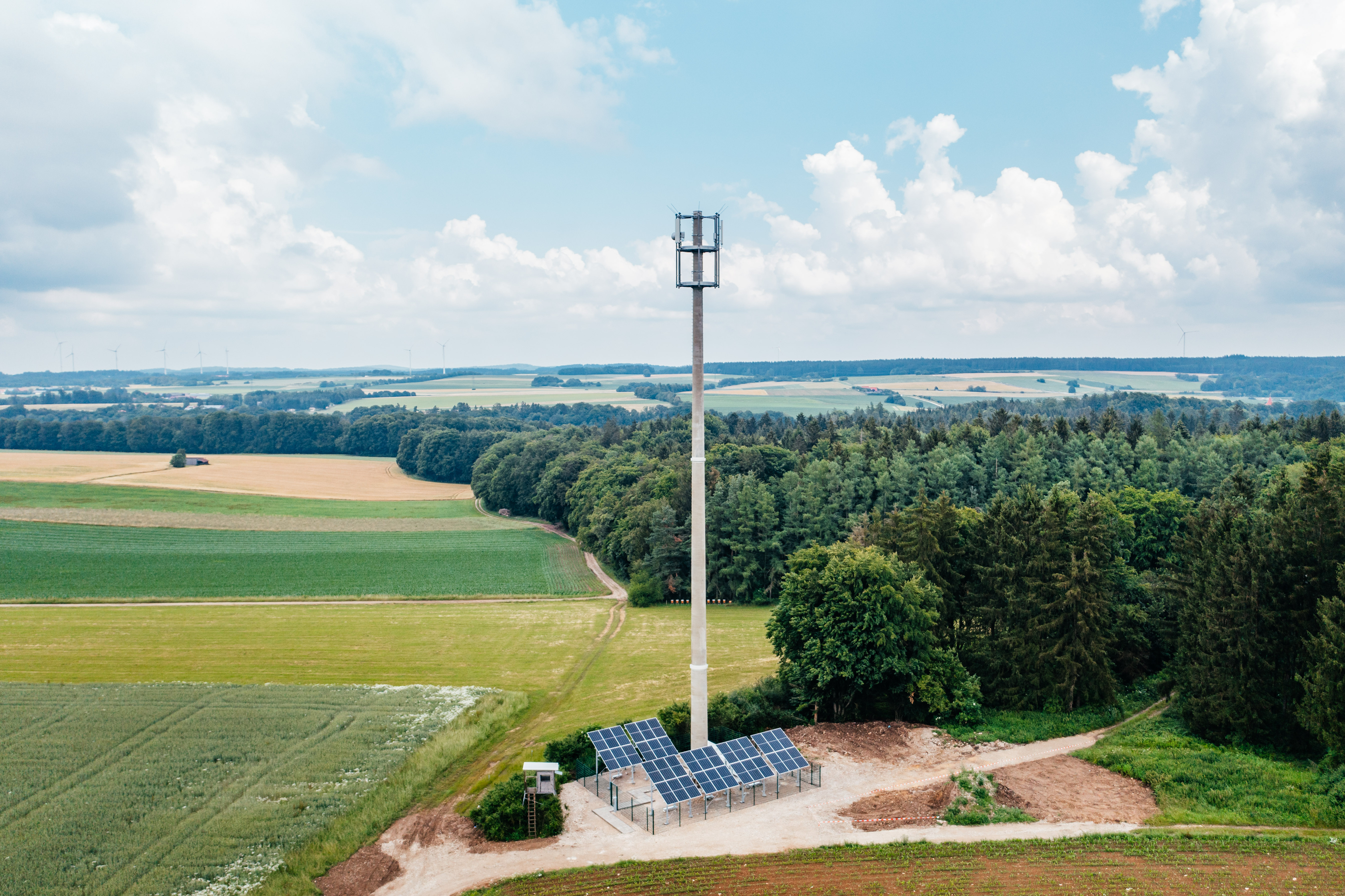 Whether wind turbines or photovoltaics - O2 Telefónica has been generating energy for the operation of its masts directly on site for years. There are around a dozen mobile phone masts across Germany whose power supply is supported by photovoltaic systems. At the beginning of 2024, the telecommunications provider took the next step and put the first completely energy self-sufficient radio tower into operation in Kirtorf, Hesse. Energy self-sufficient sites are an integral part of O2 Telefónica's sustainability strategy.